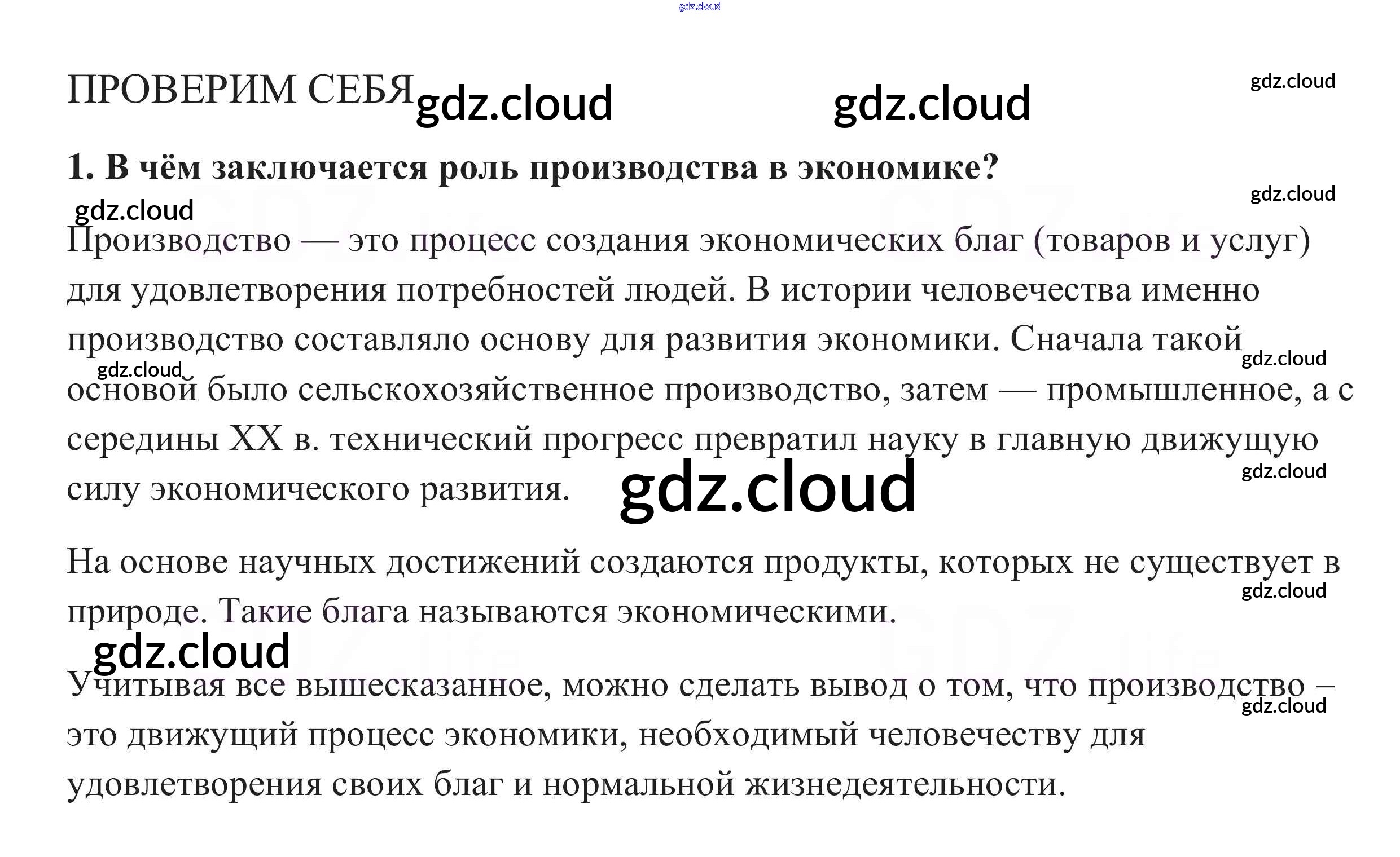 Проверим себя §21. Производство - основа экономики по Обществознанию 8 класс Учебник Боголюбов Академический школьный учебник Просвещение