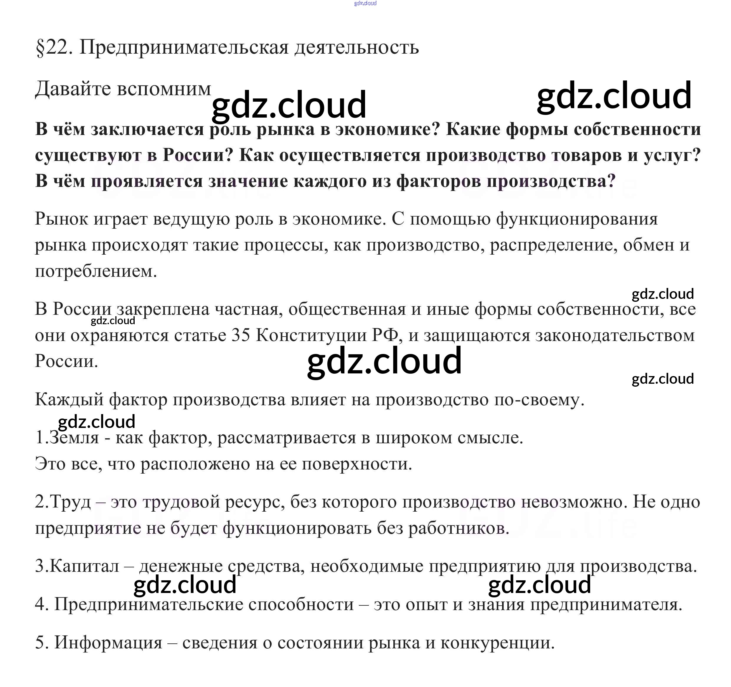 Вспомним §22. Предпринимательская деятельность по Обществознанию 8 класс Учебник Боголюбов Академический школьный учебник Просвещение