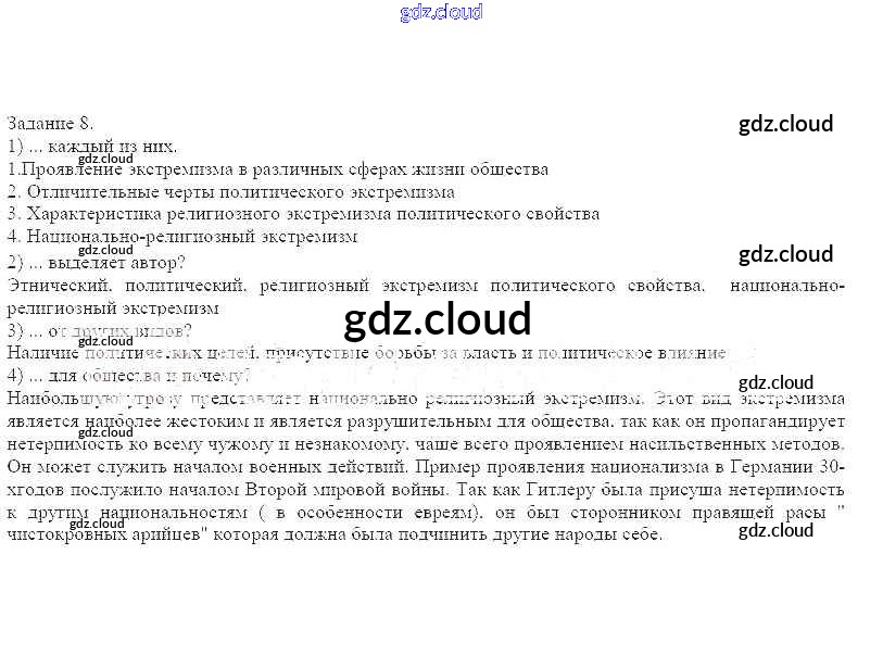 Ответ на задание 8 Рабочая тетрадь Обществознание за 9 (девятый) класс Митькин УМК 2015 ФГОС онлайн и без номера телефона.