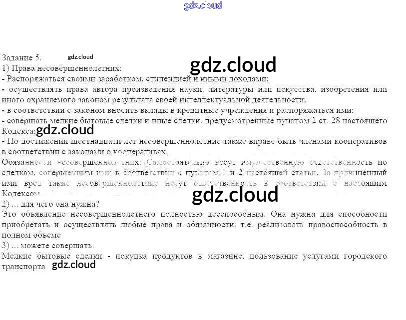 Ответ на задание 5 Рабочая тетрадь Обществознание за 9 (девятый) класс Митькин УМК 2015 ФГОС онлайн и без номера телефона.