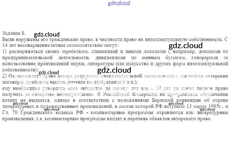 Ответ на задание 8 Рабочая тетрадь Обществознание за 9 (девятый) класс Митькин УМК 2015 ФГОС онлайн и без номера телефона.