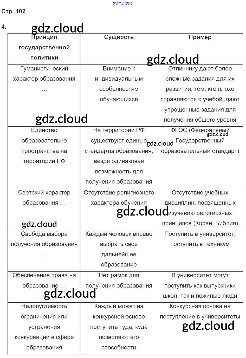 Ответ на задание 102 Рабочая тетрадь Обществознание за 9 (девятый) класс Котова, Лискова УМК 2016 ФГОС онлайн и без номера телефона.