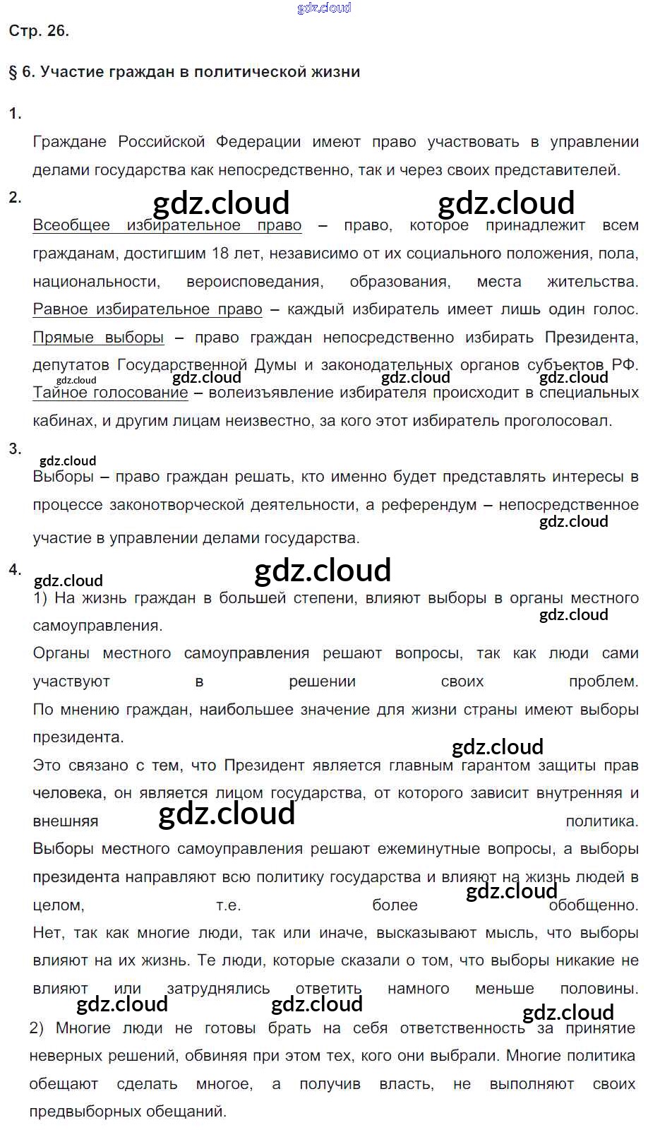 Ответ на задание 26 Рабочая тетрадь Обществознание за 9 (девятый) класс Котова, Лискова УМК 2016 ФГОС онлайн и без номера телефона.