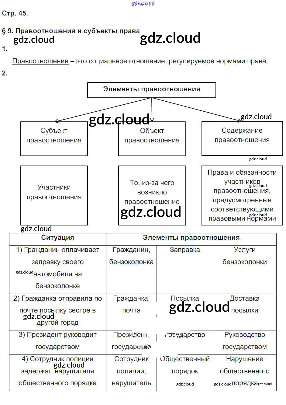 Ответ на задание 45 Рабочая тетрадь Обществознание за 9 (девятый) класс Котова, Лискова УМК 2016 ФГОС онлайн и без номера телефона.