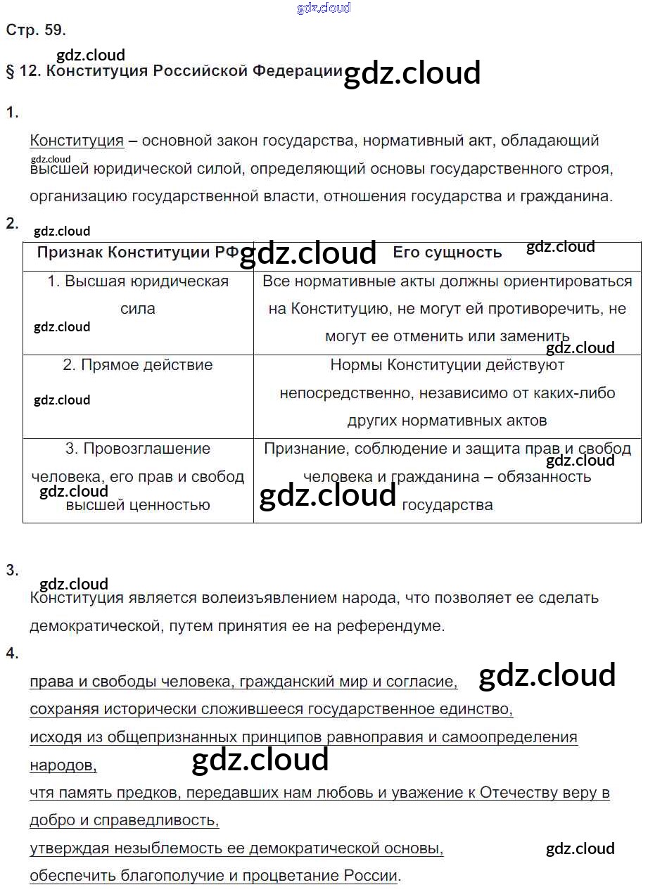 Ответ на задание 59 Рабочая тетрадь Обществознание за 9 (девятый) класс Котова, Лискова УМК 2016 ФГОС онлайн и без номера телефона.