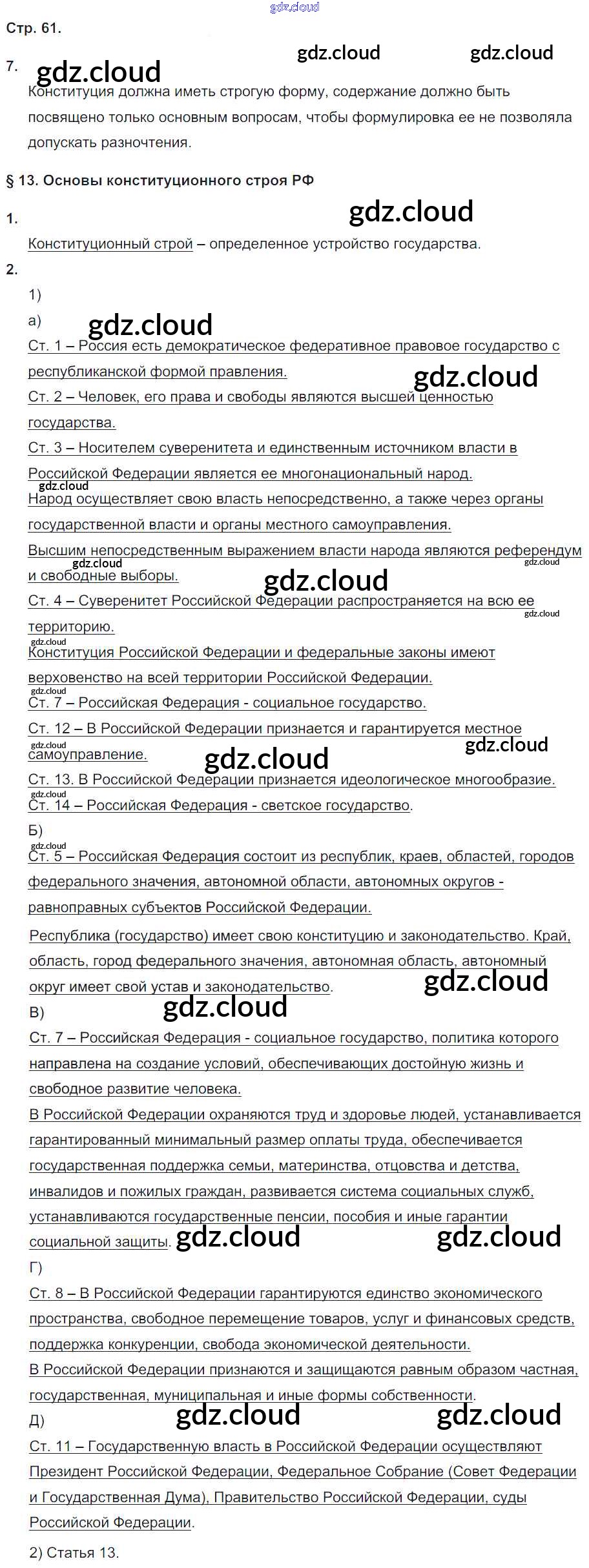 Ответ на задание 61 Рабочая тетрадь Обществознание за 9 (девятый) класс Котова, Лискова УМК 2016 ФГОС онлайн и без номера телефона.