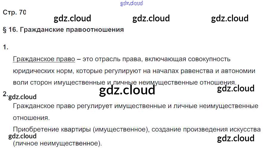 Ответ на задание 70 Рабочая тетрадь Обществознание за 9 (девятый) класс Котова, Лискова УМК 2016 ФГОС онлайн и без номера телефона.