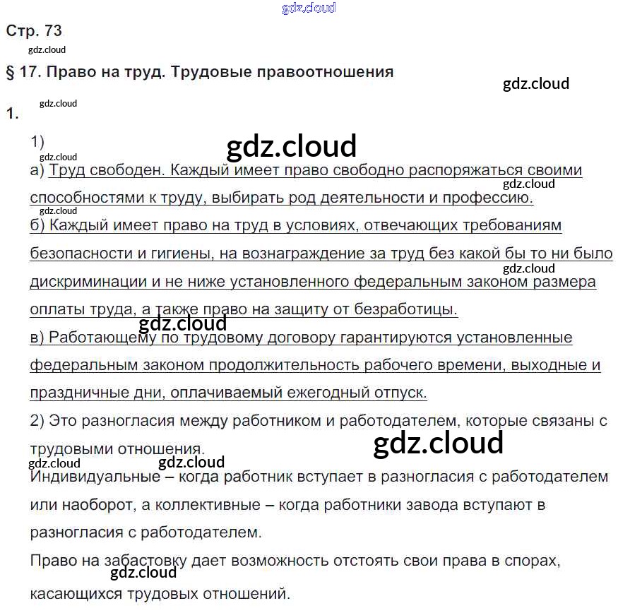 Ответ на задание 73 Рабочая тетрадь Обществознание за 9 (девятый) класс Котова, Лискова УМК 2016 ФГОС онлайн и без номера телефона.