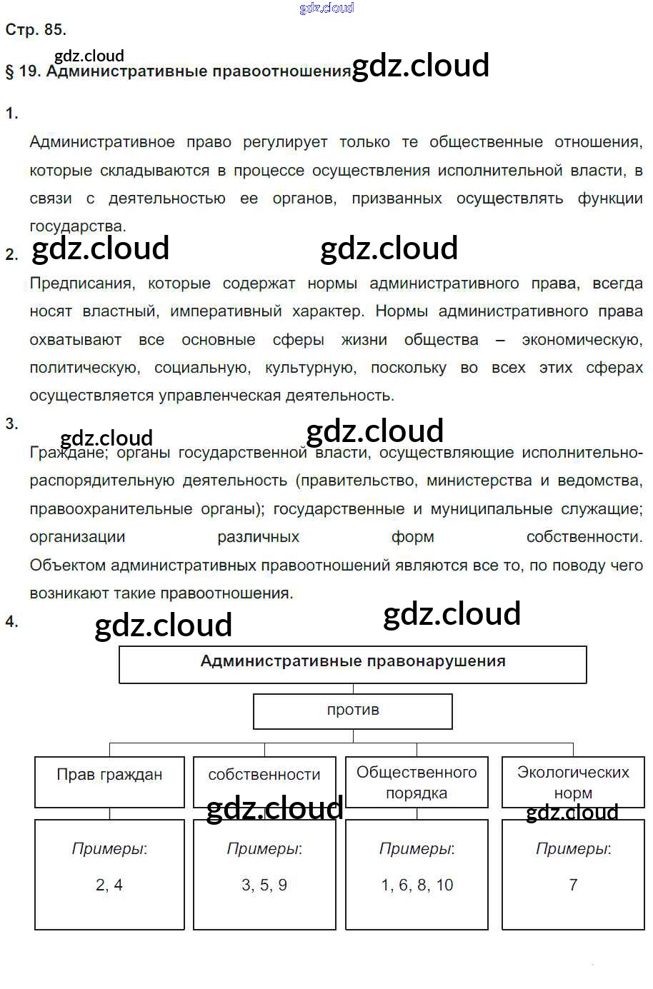 Ответ на задание 85 Рабочая тетрадь Обществознание за 9 (девятый) класс Котова, Лискова УМК 2016 ФГОС онлайн и без номера телефона.
