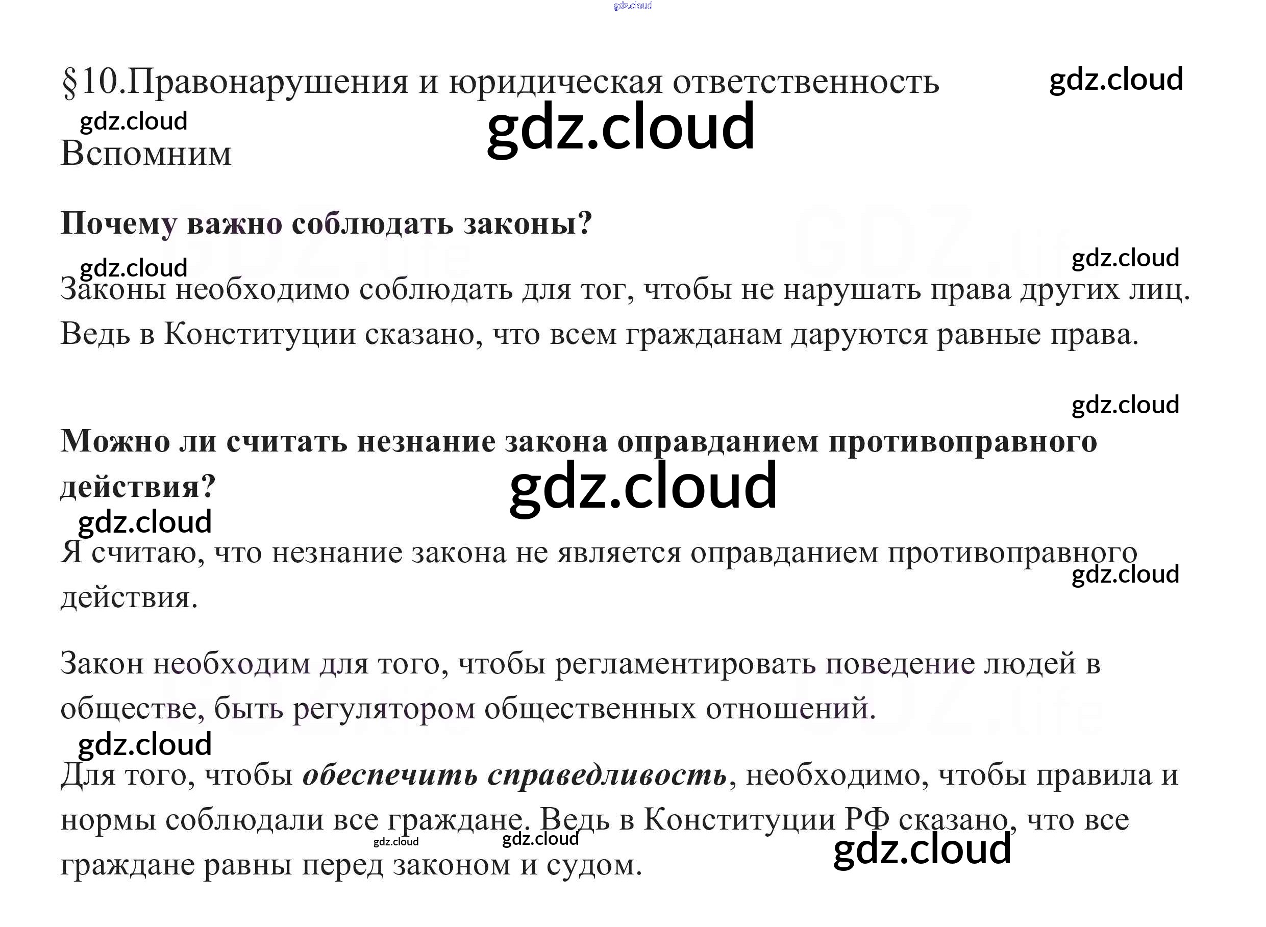 Вспомним Ответы к § 10 по Обществознанию 9 класс Учебник Боголюбов УМК Просвещение