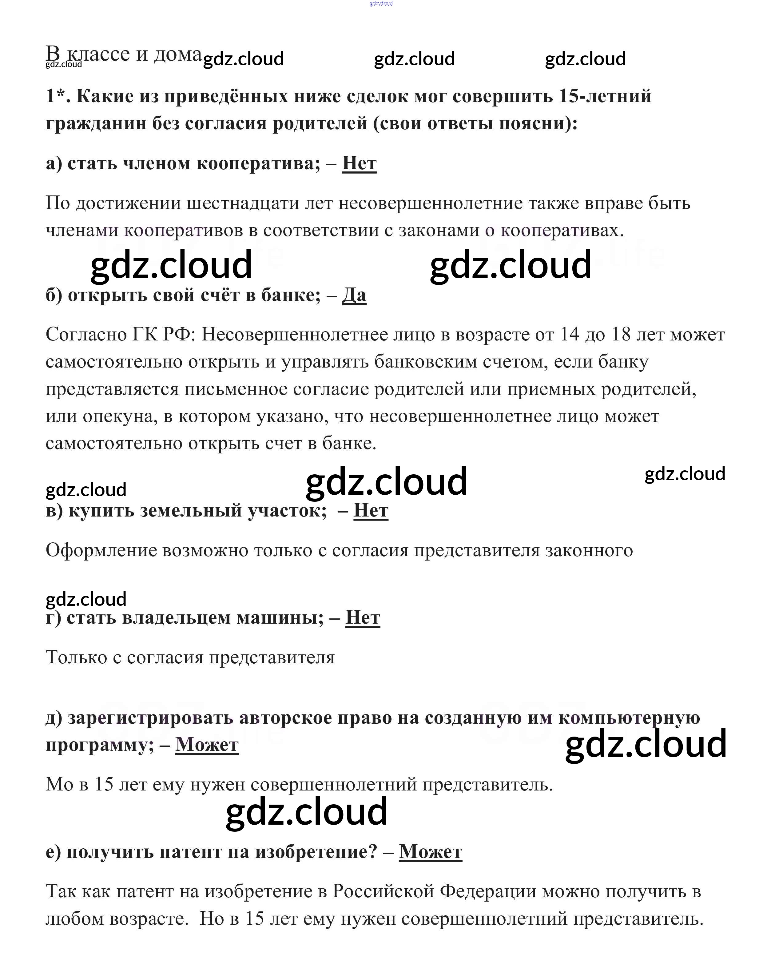 В классе и дома Ответы к § 16 по Обществознанию 9 класс Учебник Боголюбов УМК Просвещение
