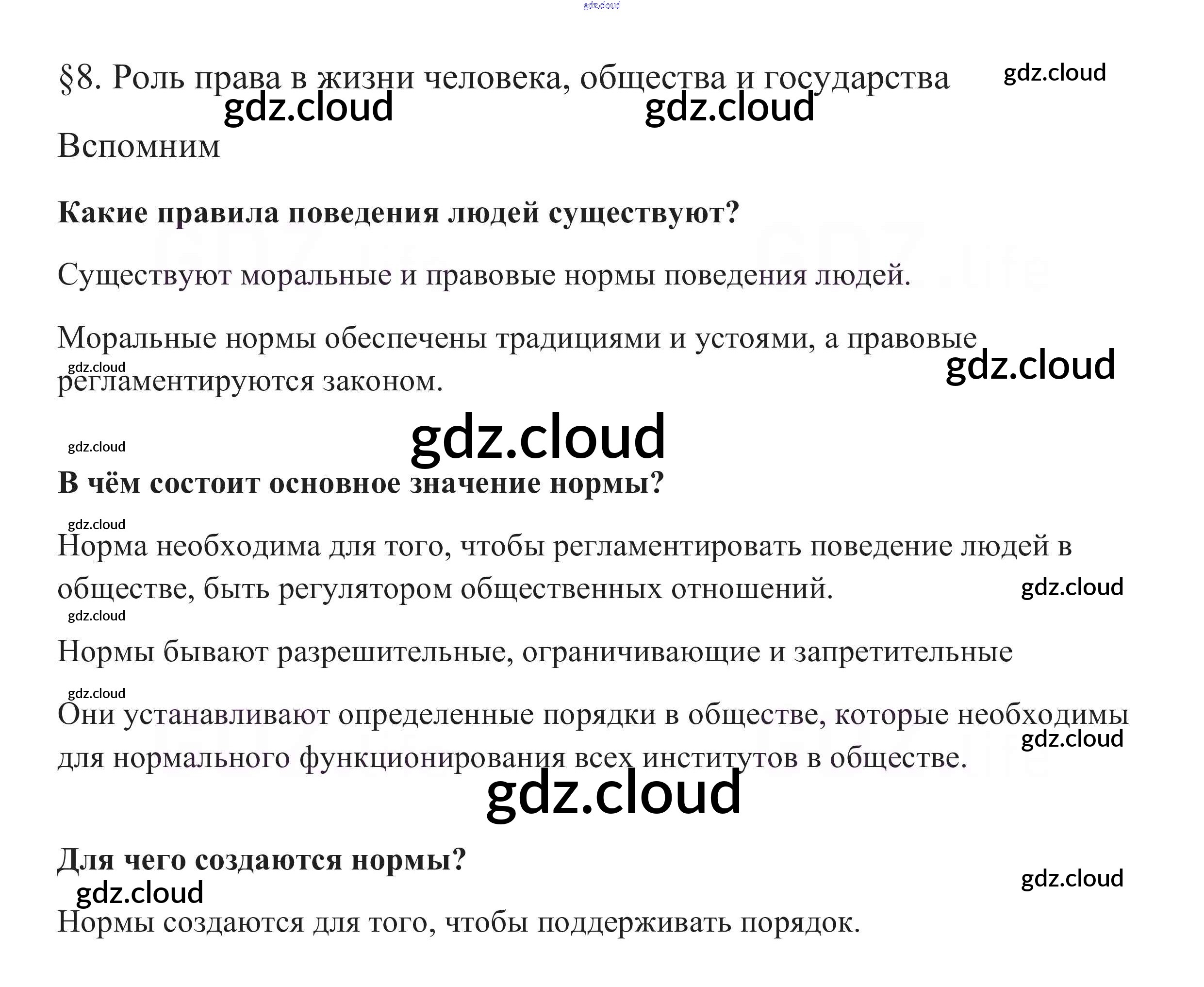 Вспомним Ответы к § 8 по Обществознанию 9 класс Учебник Боголюбов УМК Просвещение