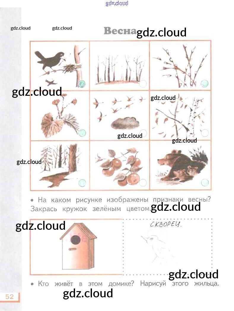 Ответ на задание 52 Рабочая тетрадь Окружающий мир за 1 (первый) класс Ивченкова, Потапов Планета знаний 2018 Часть 1, 2