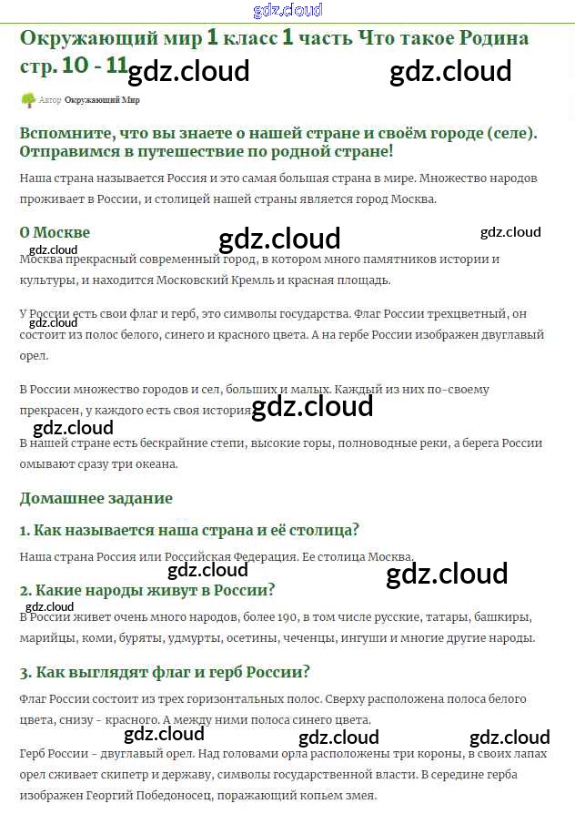 Ответ на задание 10-11 Учебник Окружающий мир за 1 (первый) класс Плешаков Школа России 2017 Часть 1, 2