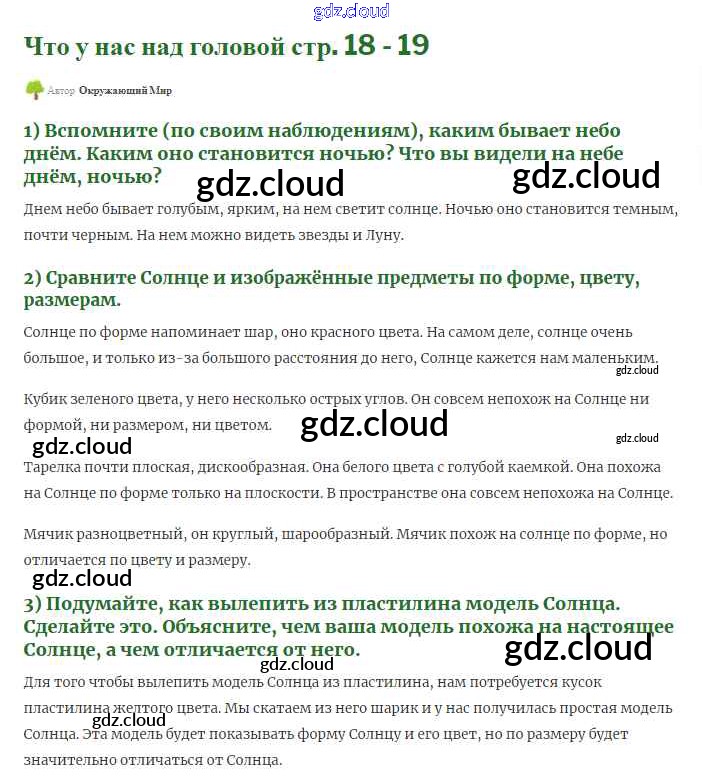 Ответ на задание 18-19 Учебник Окружающий мир за 1 (первый) класс Плешаков Школа России 2017 Часть 1, 2