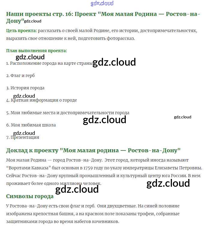 Проекты (Моя малая Родина) стр 16 Ответы к части 1 (Страниицы) по Окружающему миру 1 класс Учебник Плешаков Школа России Часть 1, 2 Просвещение