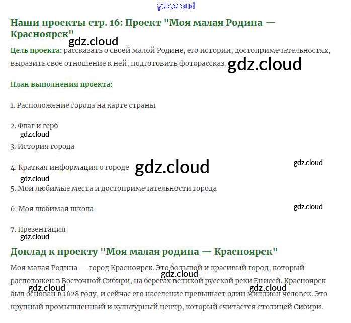 Проекты (Моя малая Родина) стр 16 Ответы к части 1 (Страниицы) по Окружающему миру 1 класс Учебник Плешаков Школа России Часть 1, 2 Просвещение