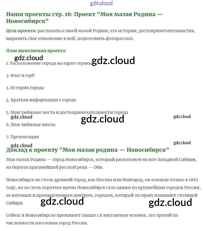 Проекты (Моя малая Родина) стр 16 Ответы к части 1 (Страниицы) по Окружающему миру 1 класс Учебник Плешаков Школа России Часть 1, 2 Просвещение