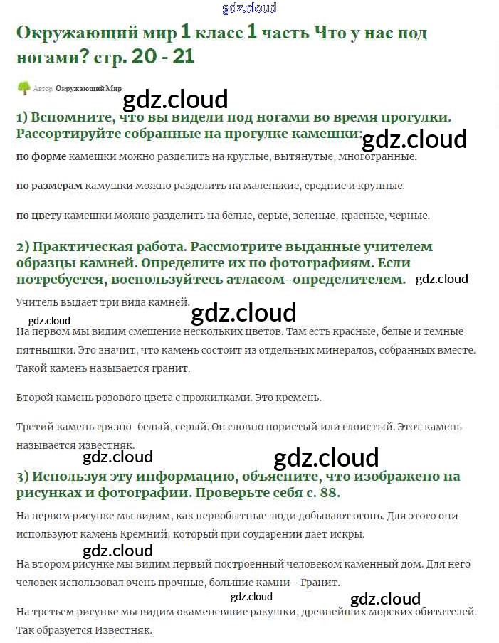 Ответ на задание 20-21 Учебник Окружающий мир за 1 (первый) класс Плешаков Школа России 2017 Часть 1, 2