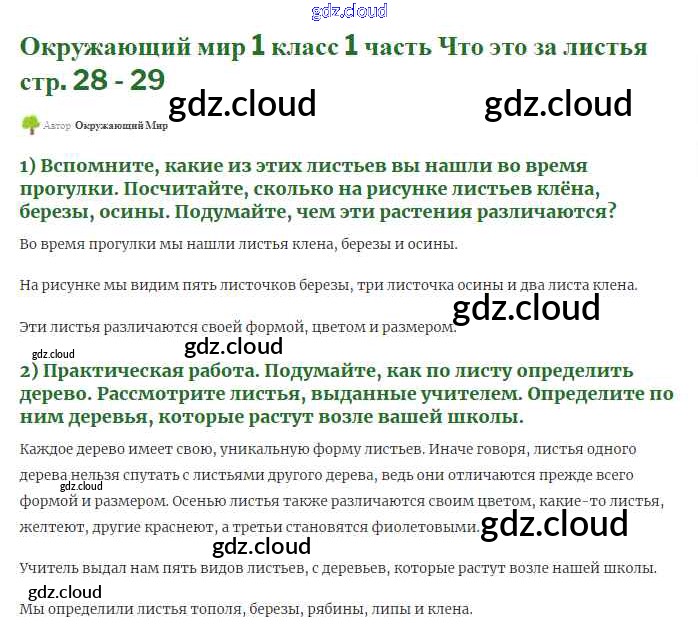 Ответ на задание 28-29 Учебник Окружающий мир за 1 (первый) класс Плешаков Школа России 2017 Часть 1, 2