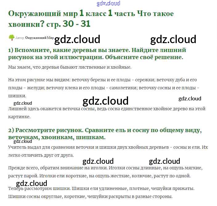 Ответ на задание 30-31 Учебник Окружающий мир за 1 (первый) класс Плешаков Школа России 2017 Часть 1, 2