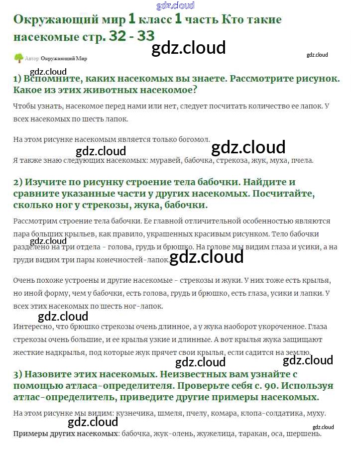 Ответ на задание 32-33 Учебник Окружающий мир за 1 (первый) класс Плешаков Школа России 2017 Часть 1, 2