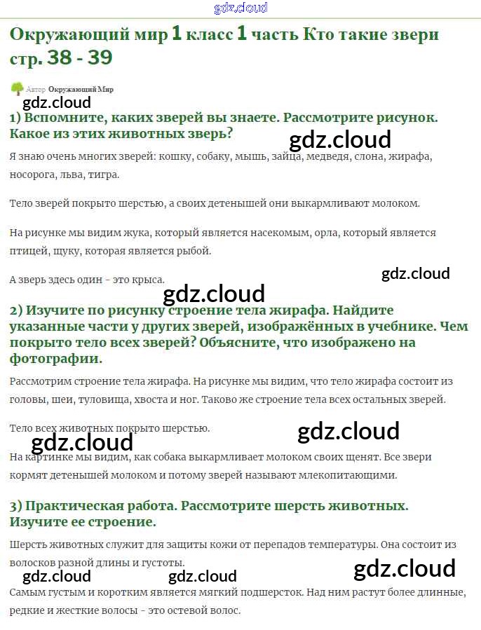 Ответ на задание 38-39 Учебник Окружающий мир за 1 (первый) класс Плешаков Школа России 2017 Часть 1, 2