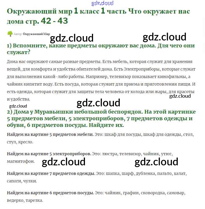 Ответ на задание 42-43 Учебник Окружающий мир за 1 (первый) класс Плешаков Школа России 2017 Часть 1, 2