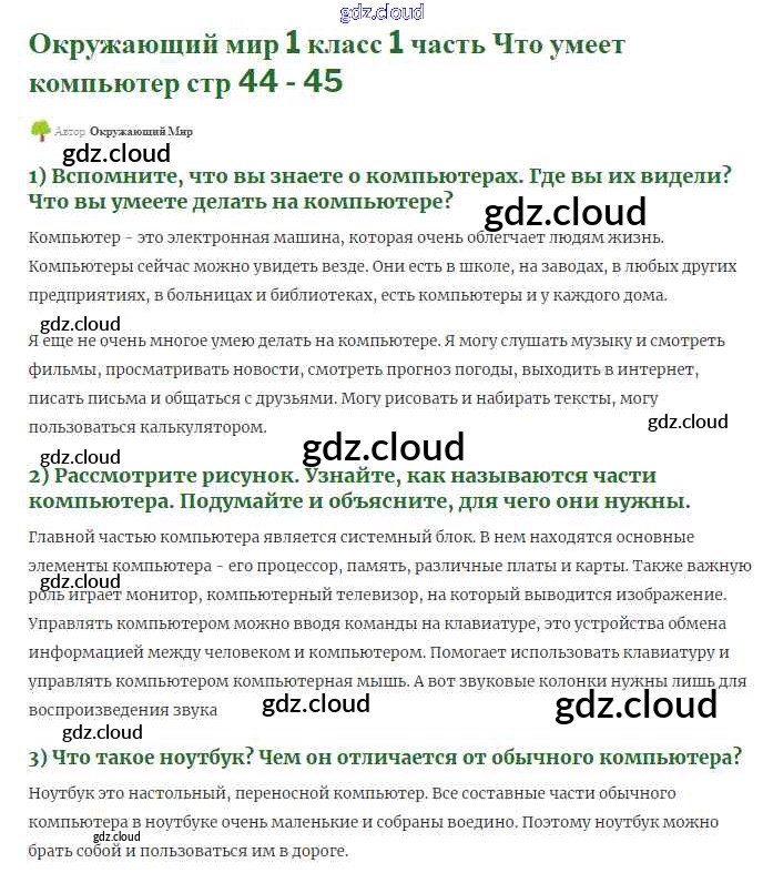 Ответ на задание 44-45 Учебник Окружающий мир за 1 (первый) класс Плешаков Школа России 2017 Часть 1, 2