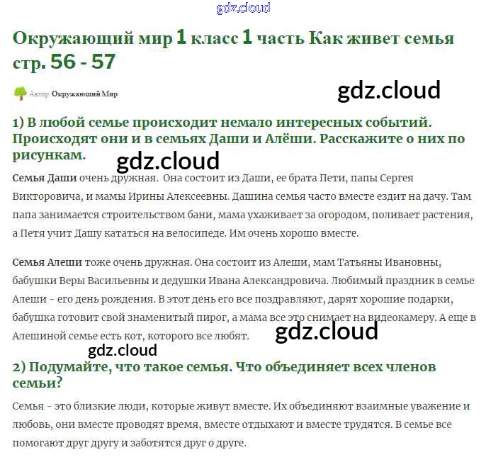 Ответ на задание 56-57 Учебник Окружающий мир за 1 (первый) класс Плешаков Школа России 2017 Часть 1, 2