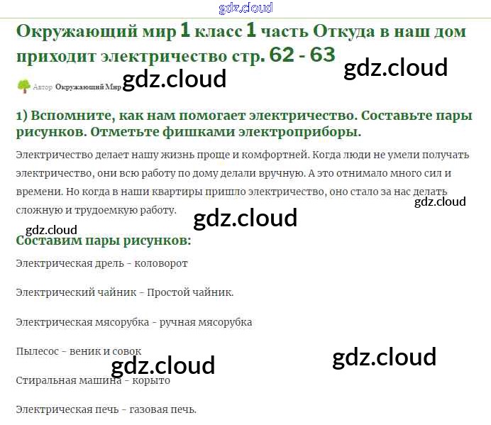 Ответ на задание 62-63 Учебник Окружающий мир за 1 (первый) класс Плешаков Школа России 2017 Часть 1, 2