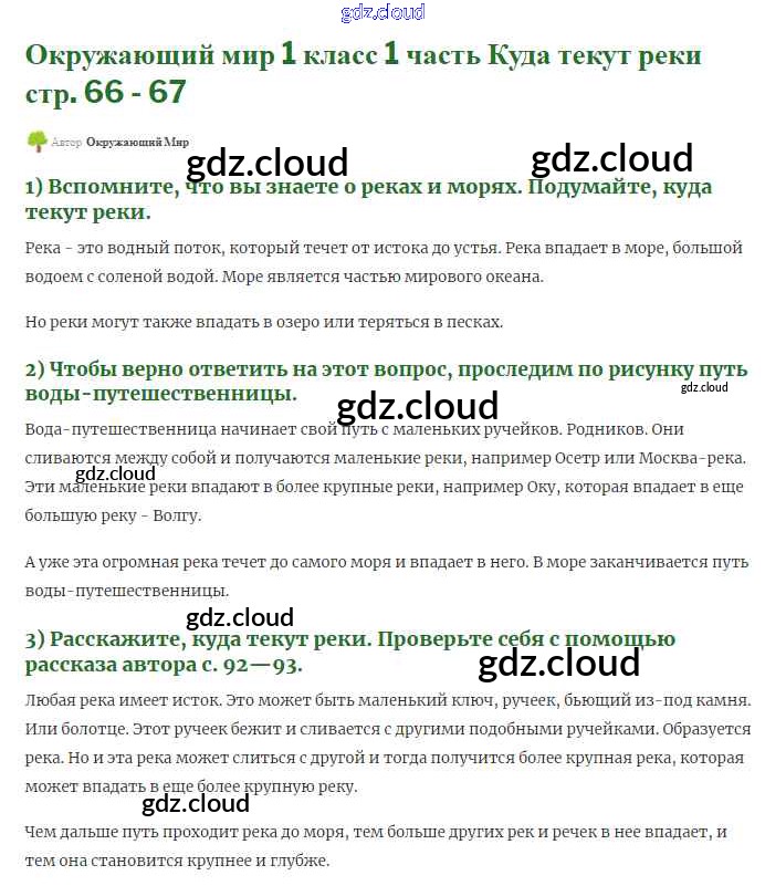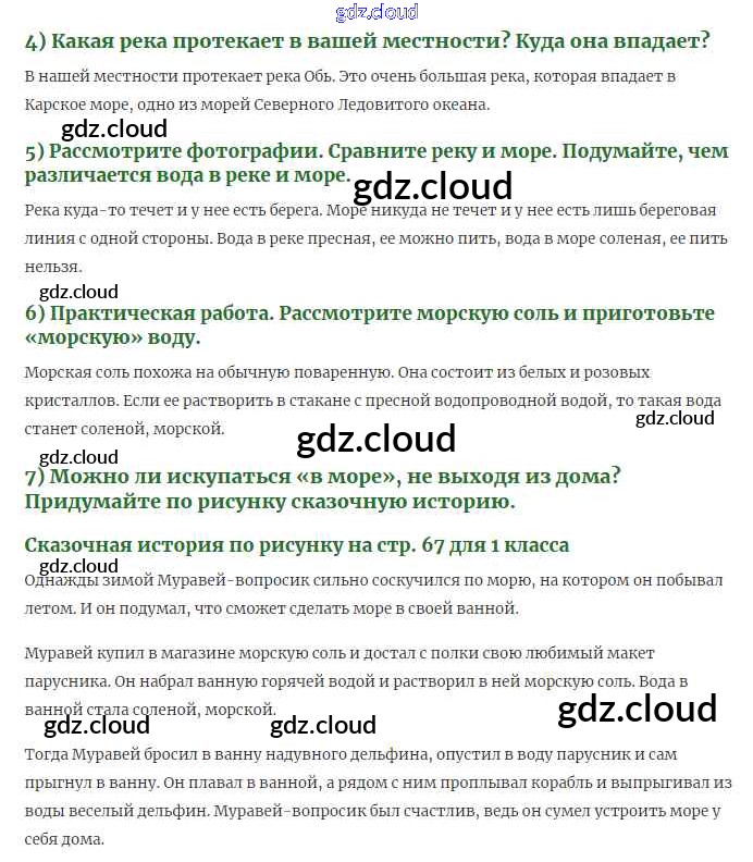 Ответ на задание 66-67 Учебник Окружающий мир за 1 (первый) класс Плешаков Школа России 2017 Часть 1, 2
