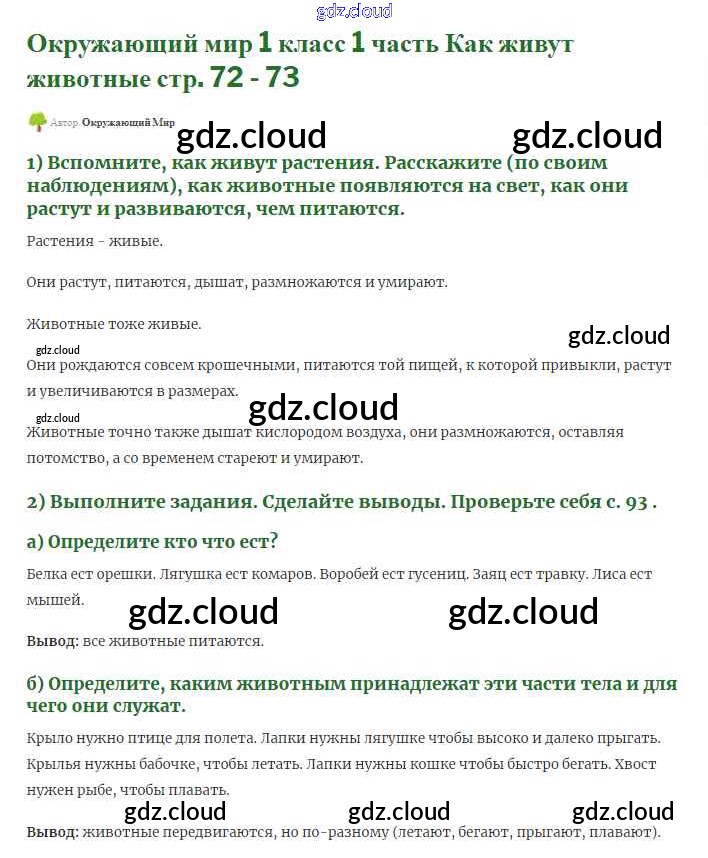 Ответ на задание 72-73 Учебник Окружающий мир за 1 (первый) класс Плешаков Школа России 2017 Часть 1, 2