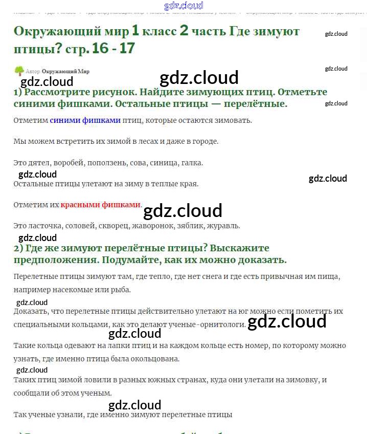 Ответ на задание 16-17 Учебник Окружающий мир за 1 (первый) класс Плешаков Школа России 2017 Часть 1, 2