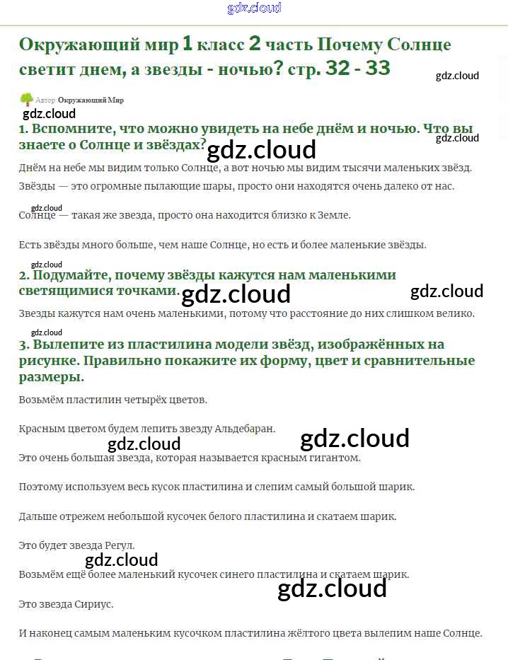 Ответ на задание 32-33 Учебник Окружающий мир за 1 (первый) класс Плешаков Школа России 2017 Часть 1, 2