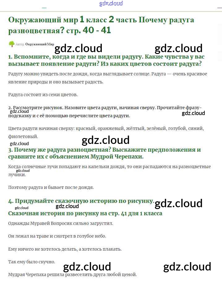 Ответ на задание 40-41 Учебник Окружающий мир за 1 (первый) класс Плешаков Школа России 2017 Часть 1, 2