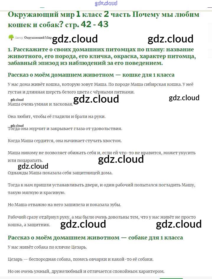 Ответ на задание 42-43 Учебник Окружающий мир за 1 (первый) класс Плешаков Школа России 2017 Часть 1, 2