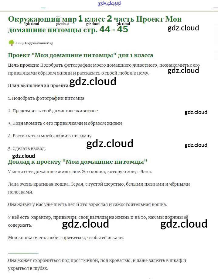 Ответ на задание 44 (мои домашние животные) Учебник Окружающий мир за 1 (первый) класс Плешаков Школа России 2017 Часть 1, 2