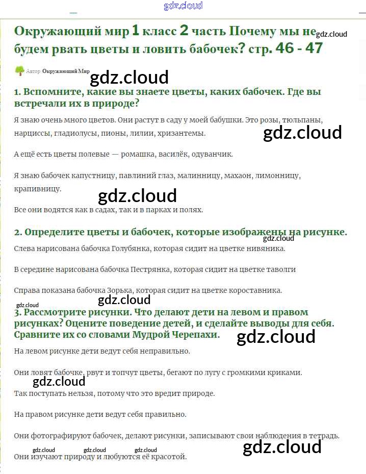 Ответ на задание 46-47 Учебник Окружающий мир за 1 (первый) класс Плешаков Школа России 2017 Часть 1, 2