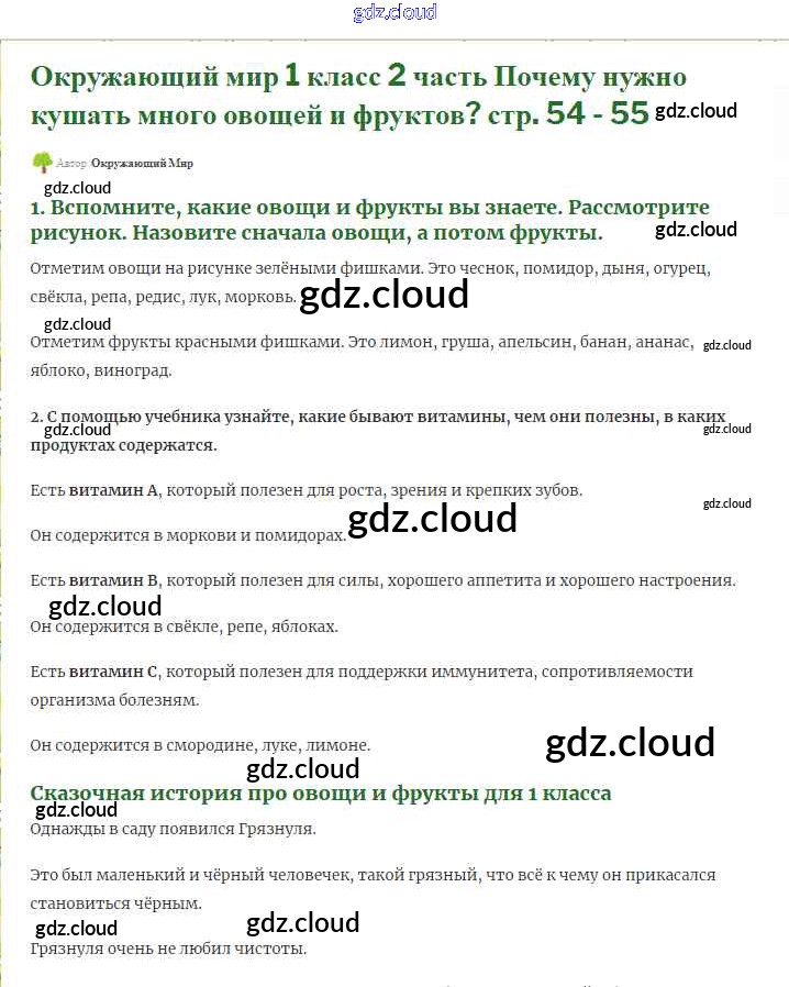 Ответ на задание 54-55 Учебник Окружающий мир за 1 (первый) класс Плешаков Школа России 2017 Часть 1, 2
