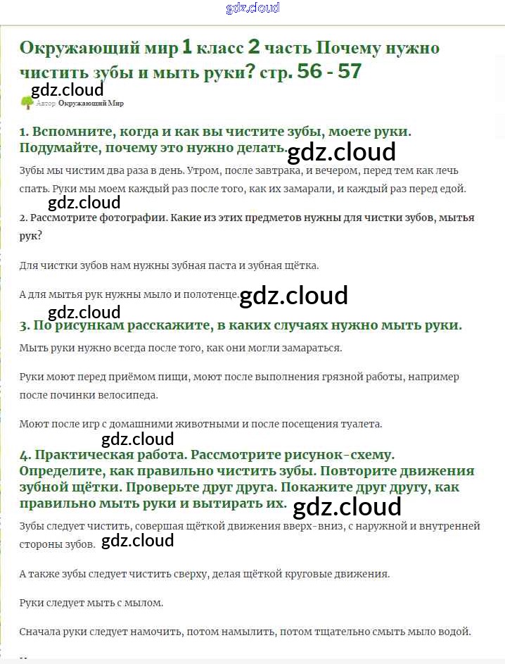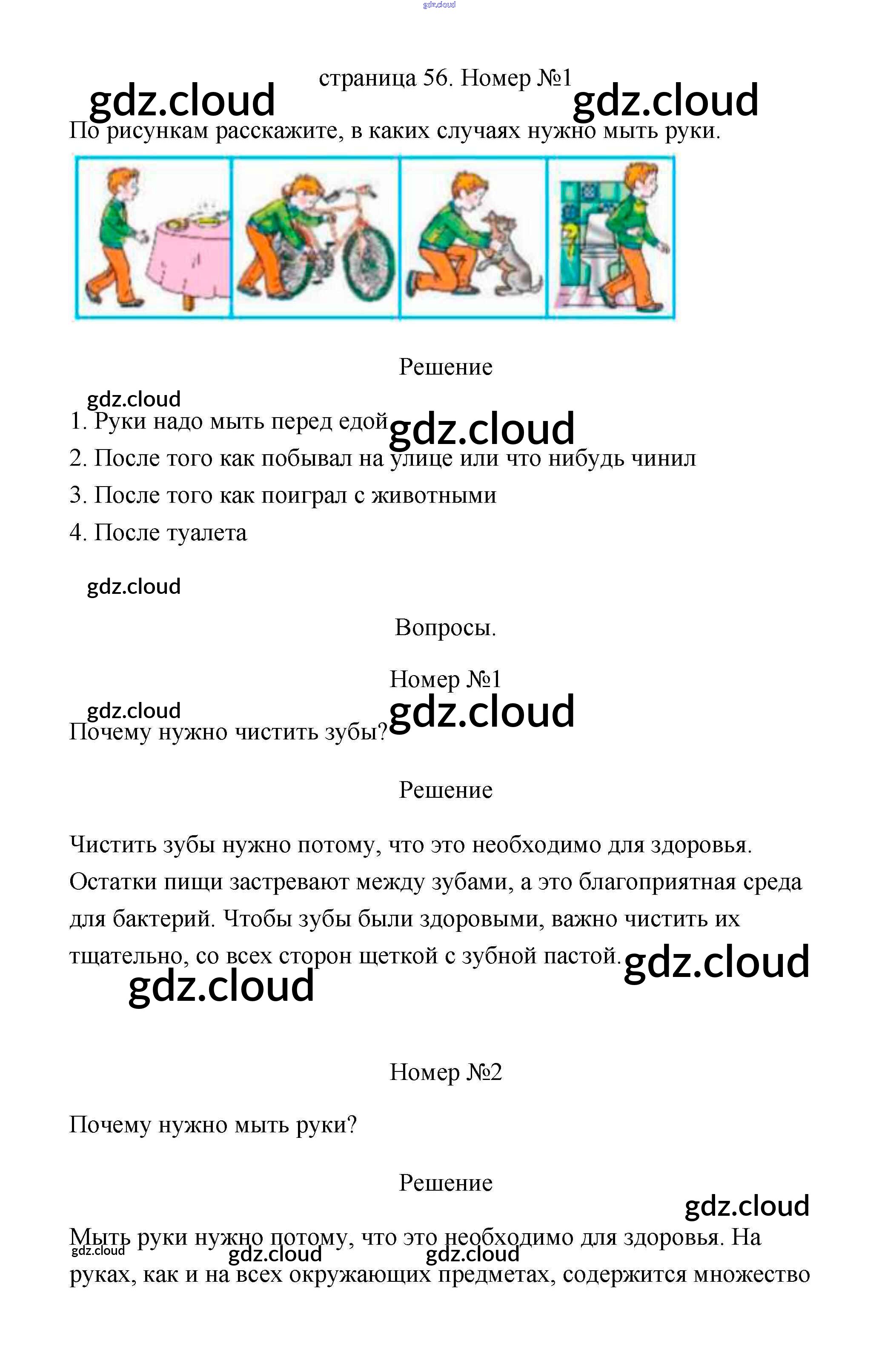 Ответ на задание 56-57 Учебник Окружающий мир за 1 (первый) класс Плешаков Школа России 2017 Часть 1, 2