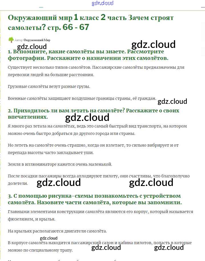 Ответ на задание 66-67 Учебник Окружающий мир за 1 (первый) класс Плешаков Школа России 2017 Часть 1, 2