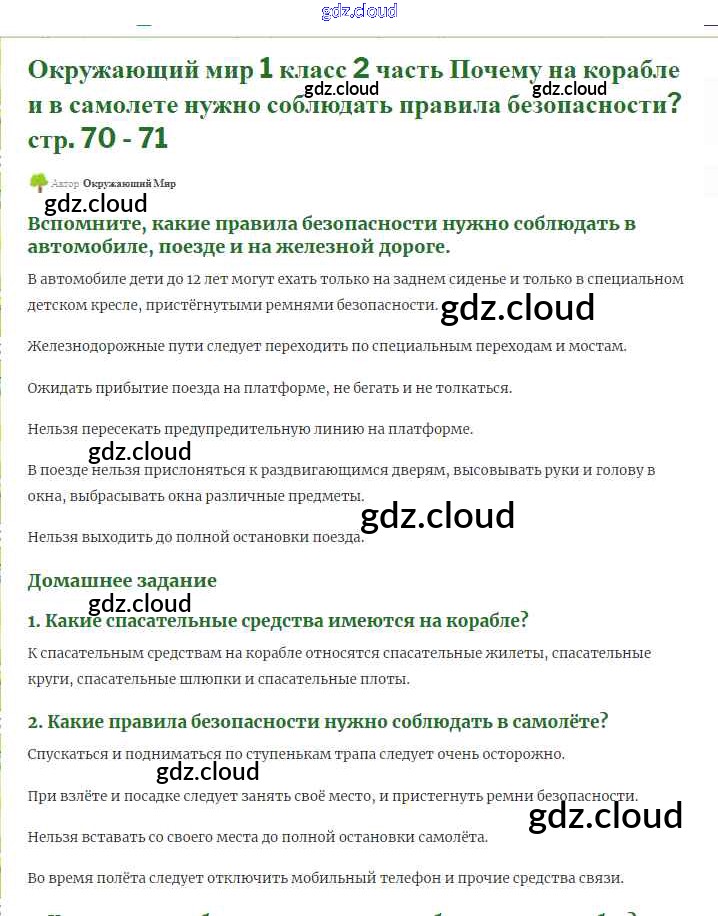 Ответ на задание 70-71 Учебник Окружающий мир за 1 (первый) класс Плешаков Школа России 2017 Часть 1, 2