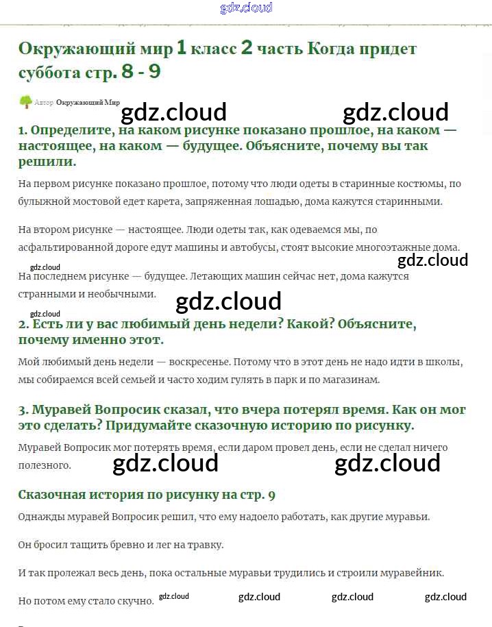 Ответ на задание 8-9 Учебник Окружающий мир за 1 (первый) класс Плешаков Школа России 2017 Часть 1, 2