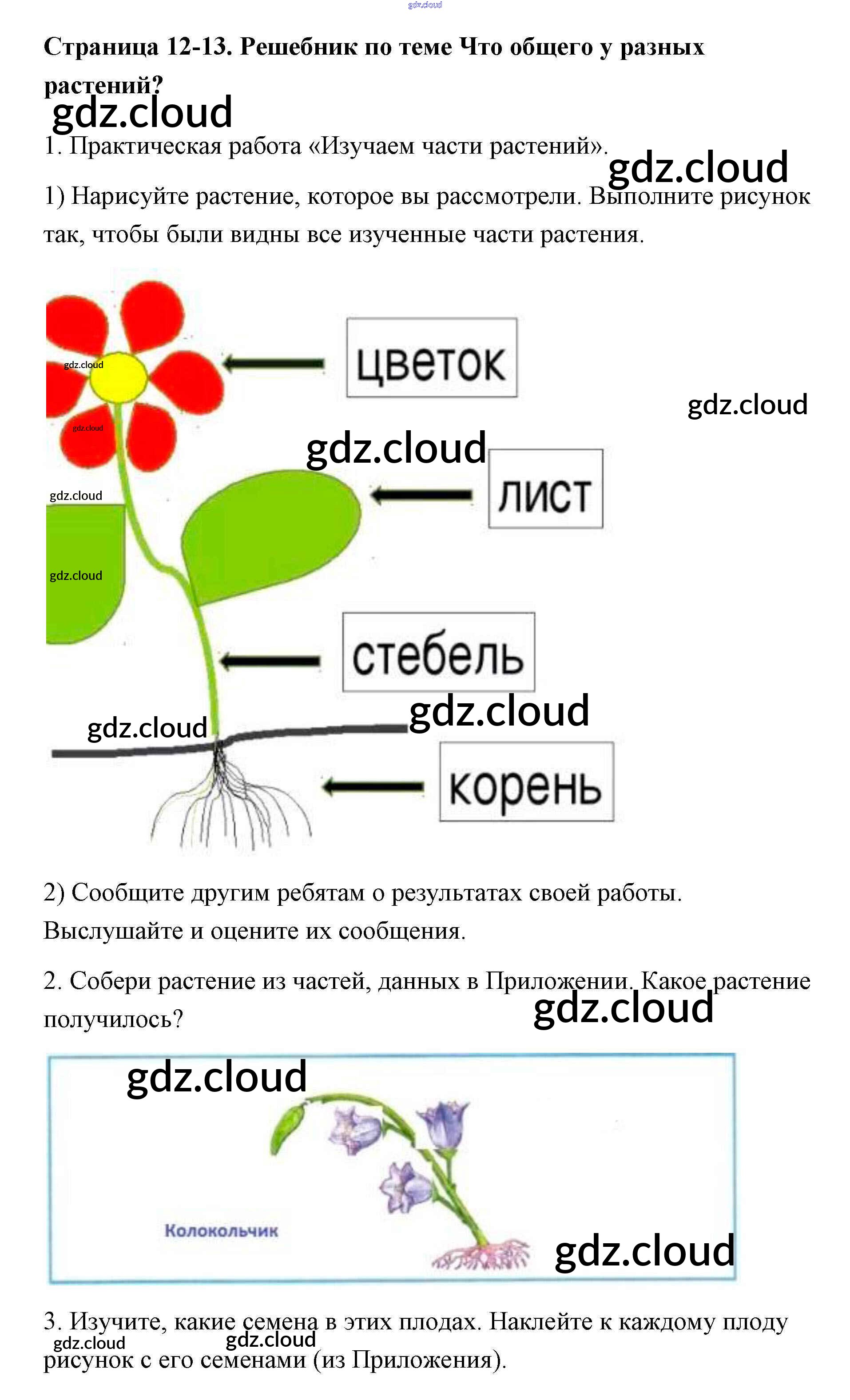 Ответ на задание 12-13 Рабочая тетрадь Окружающий мир за 1 (первый) класс Плешаков Школа России 2016 Часть 1, 2