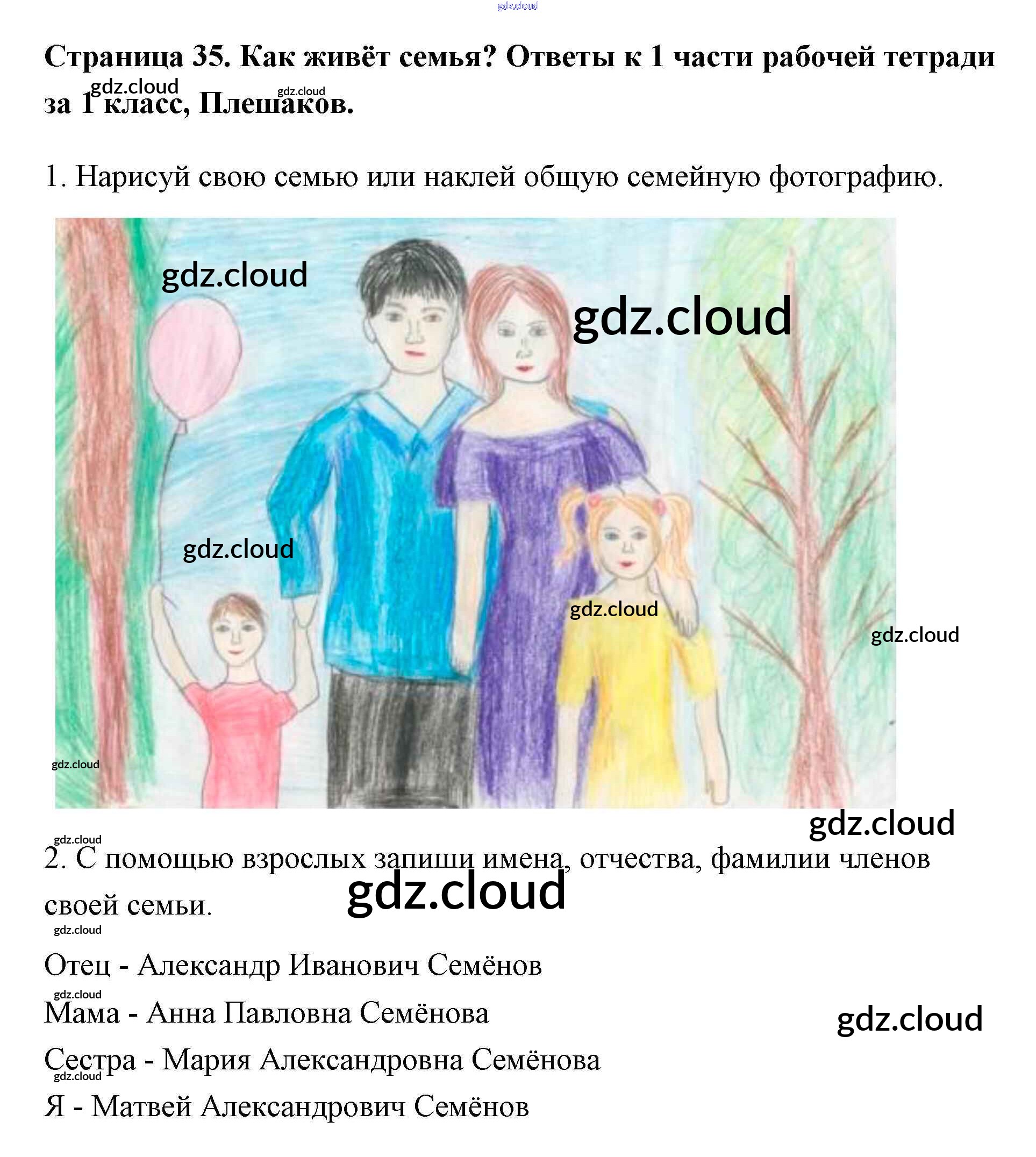 Ответ на задание 35 Рабочая тетрадь Окружающий мир за 1 (первый) класс Плешаков Школа России 2016 Часть 1, 2