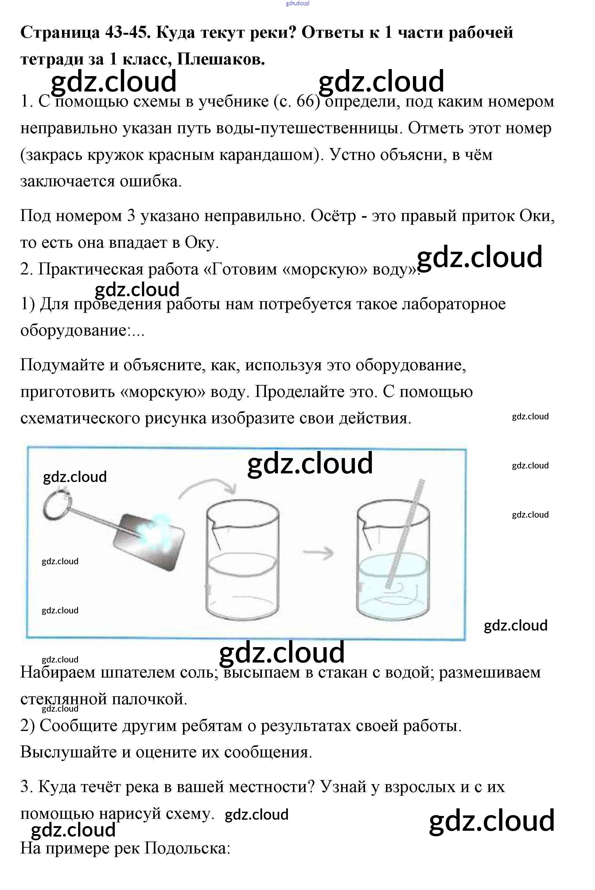 Ответ на задание 43-45 Рабочая тетрадь Окружающий мир за 1 (первый) класс Плешаков Школа России 2016 Часть 1, 2