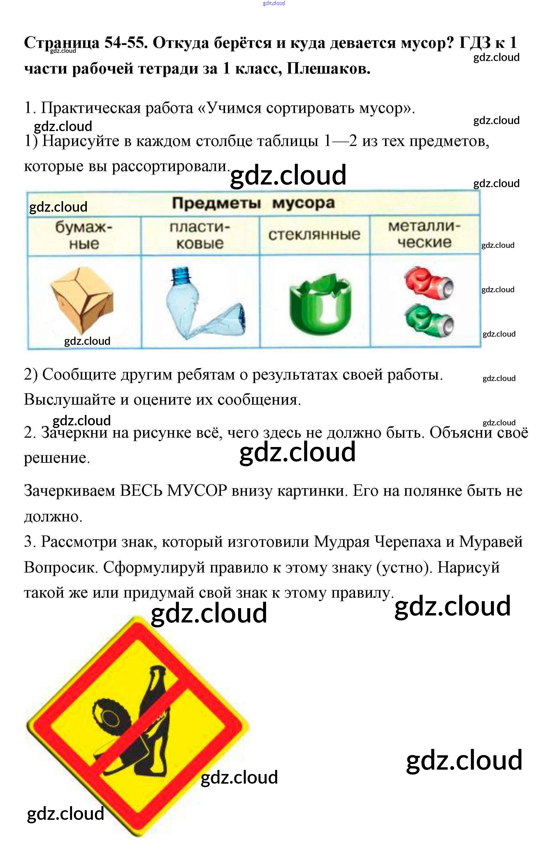 Ответ на задание 54-55 Рабочая тетрадь Окружающий мир за 1 (первый) класс Плешаков Школа России 2016 Часть 1, 2