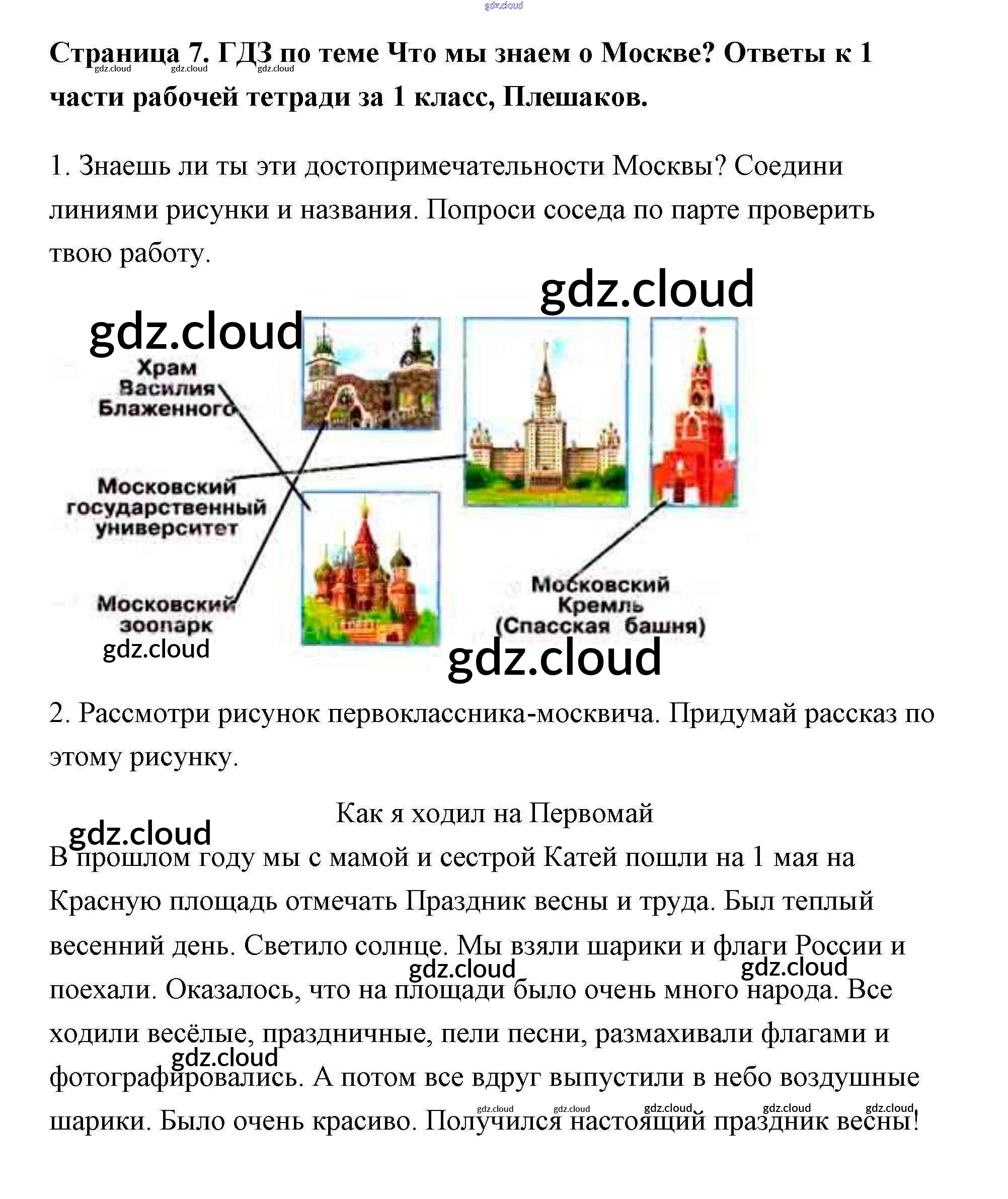 Ответ на задание 7 Рабочая тетрадь Окружающий мир за 1 (первый) класс Плешаков Школа России 2016 Часть 1, 2