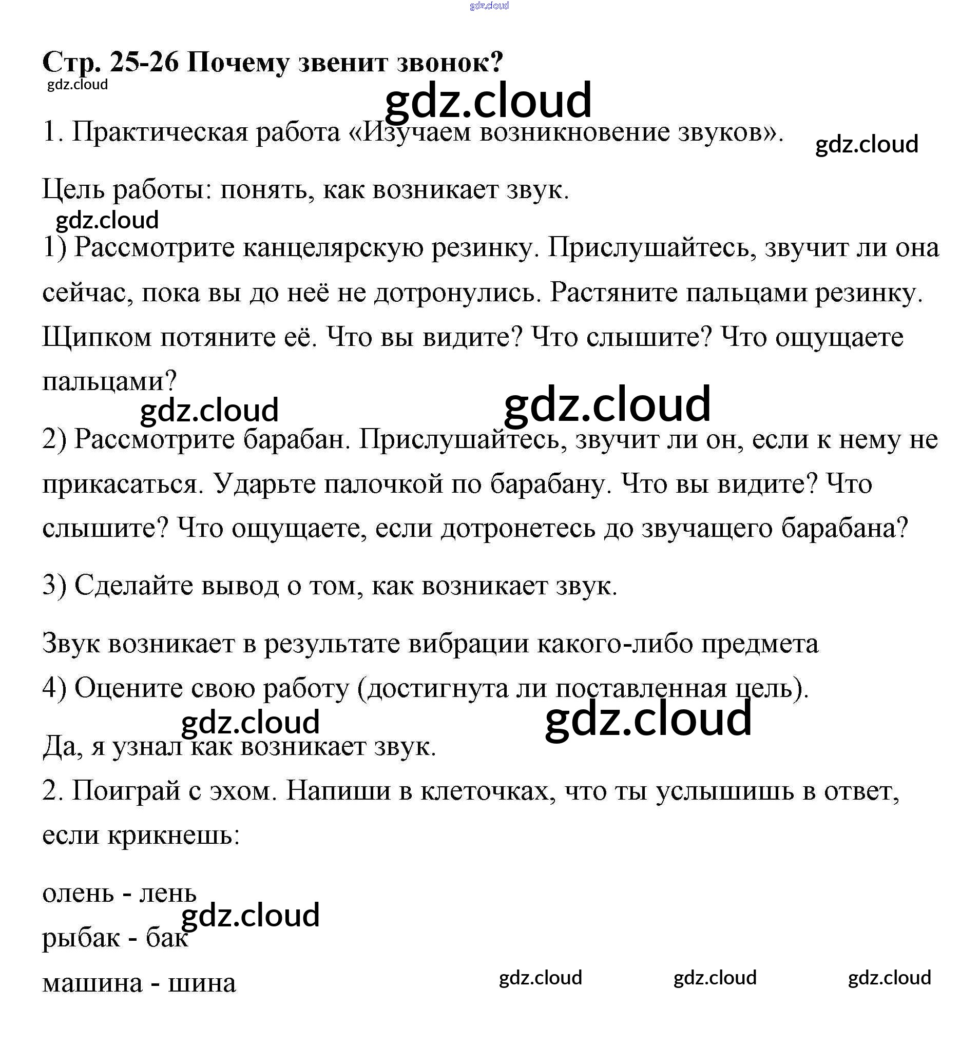 Ответ на задание 25-26 Рабочая тетрадь Окружающий мир за 1 (первый) класс Плешаков Школа России 2016 Часть 1, 2